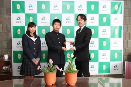 佐屋高校の皆さんがお越しになり、学校で育てた花の鉢植えを寄付してくださいました。