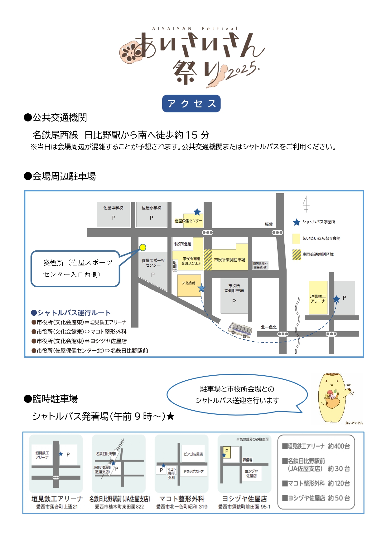 ※雨天が予想されるため、佐屋小学校、佐屋中学校、佐屋スポーツセンター駐車場は使用できません。