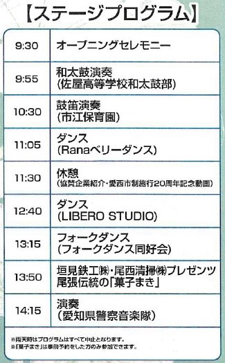 雨天が予想されるため、ステージイベントは中止決定しました。菓子まきも中止となります。