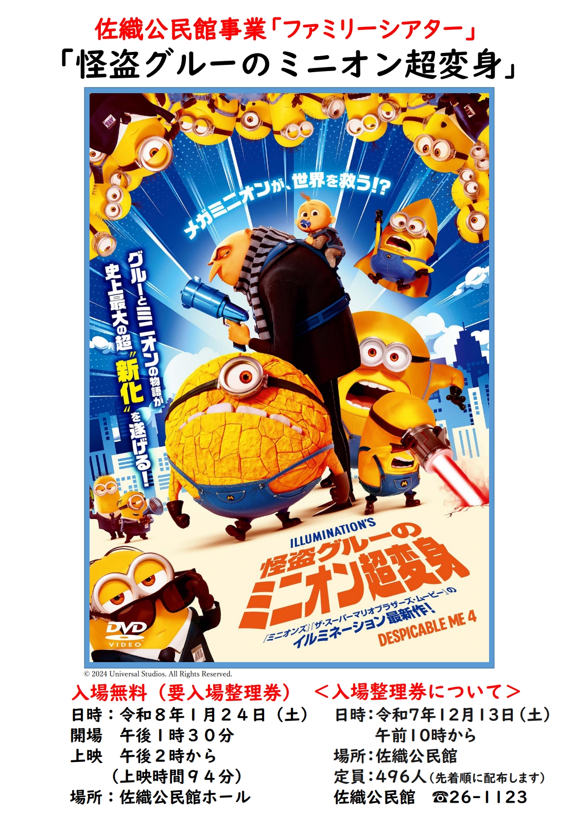 【佐織公民館ファミリーシアター】『怪盗グルーのミニオン超変身』