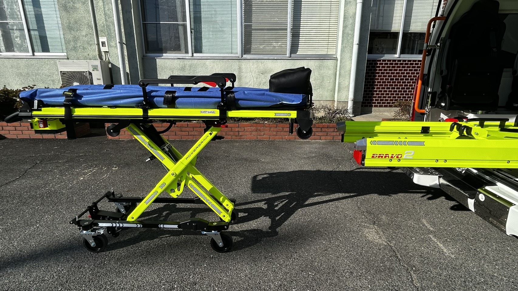 この車両は、市内在住の方より受けた寄附を購入費用として活用させていただき、救急車の側面には木曽三川をイメージしたデザインとなっており、電動ストレッチャーなど最新の資器材を装備しています。